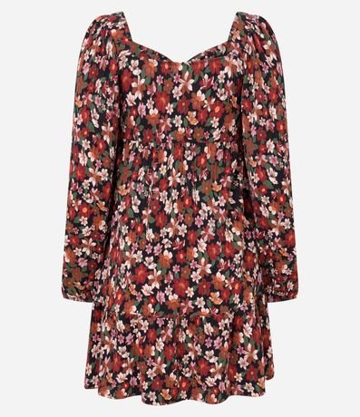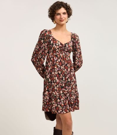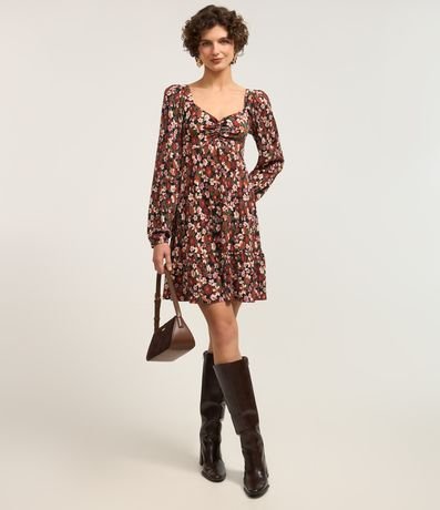 Ref: Vestido curto, confeccionado em viscose mais sustentável, com textura, decote coração e franzidinho no busto.