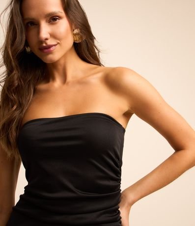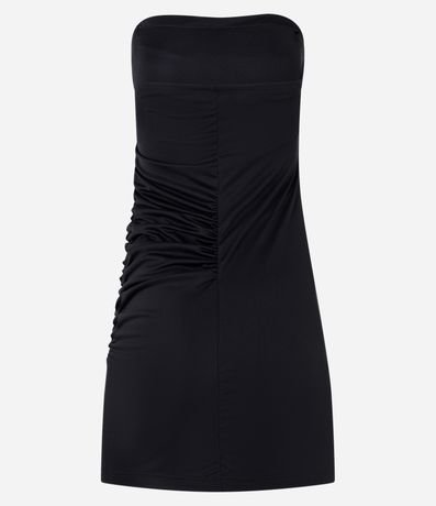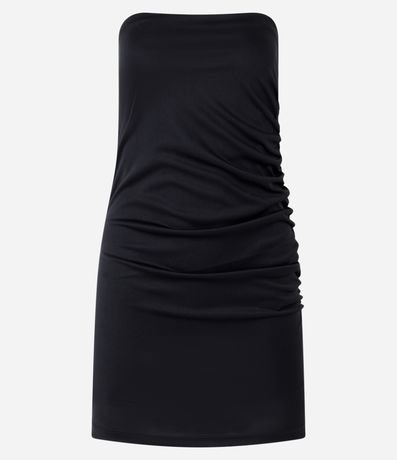 Vestido com comprimento acima dos joelhos confeccionado em jersey, sem alças e com franzidos pelo corpo.