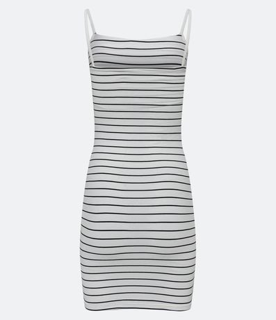 Vestido curto de alcinha, confeccionado em material mais sustentável e com listras contrastante.