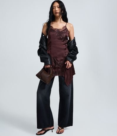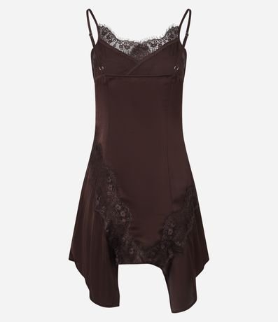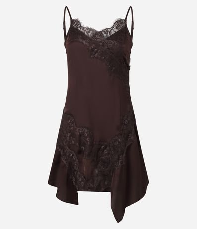 Vestido em Cetim com Detalhes em Renda