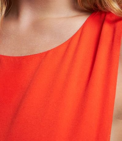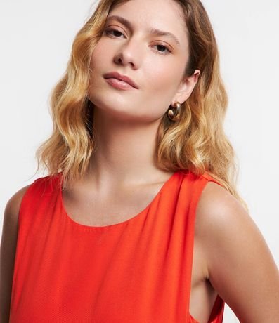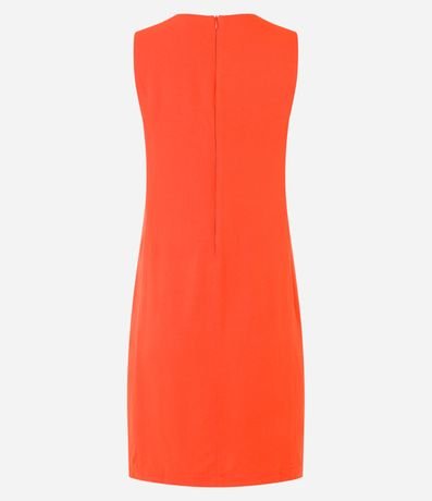 Vestido curto feminino, confeccionado em viscolinho, com superfície sem estampa. Decote redondo, sem mangas e fechamento em zíper nas costas.