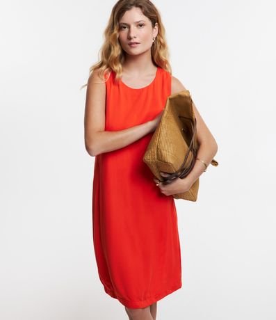 Vestido em Viscolinho com Alça Larga e Fechamento em Zíper nas Costas