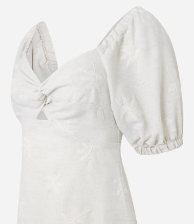 Vestido em Viscolinho com Manga Bufante e Coqueiros Bordados