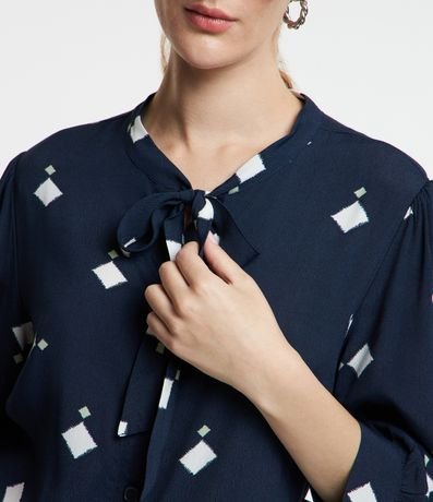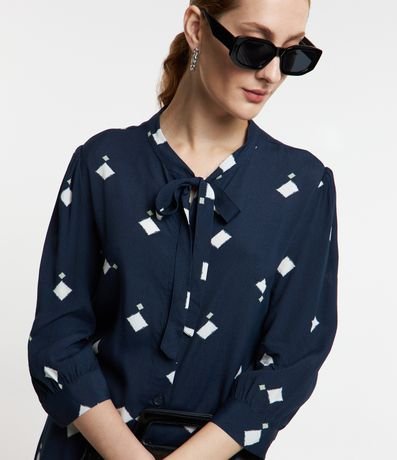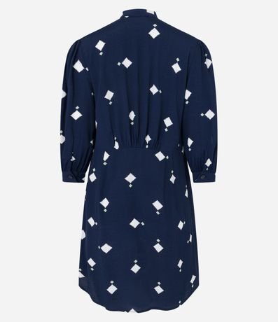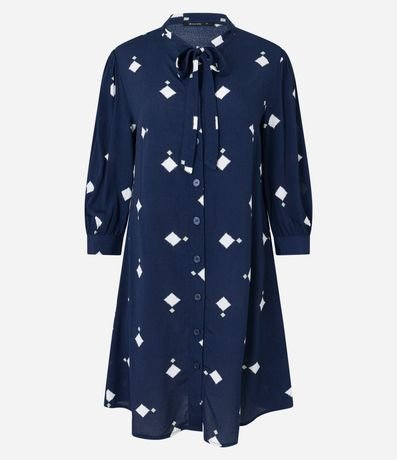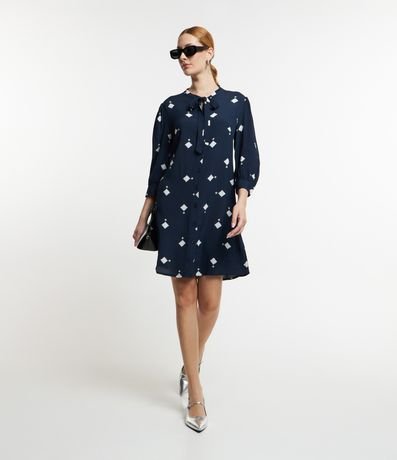 Ref: Vestido feminino, confeccionado em viscose, com gola laço, abotoamento frontal e mangas 3/4. A peça também conta com Estampa losangos.