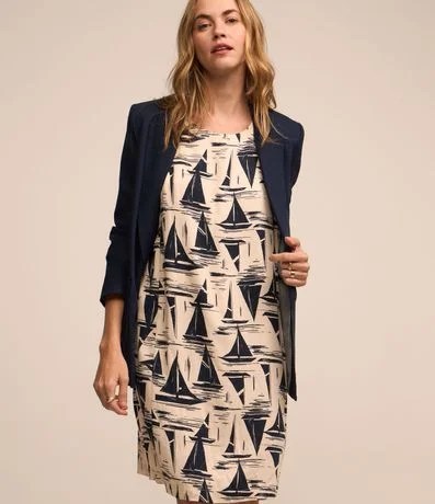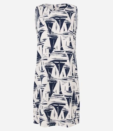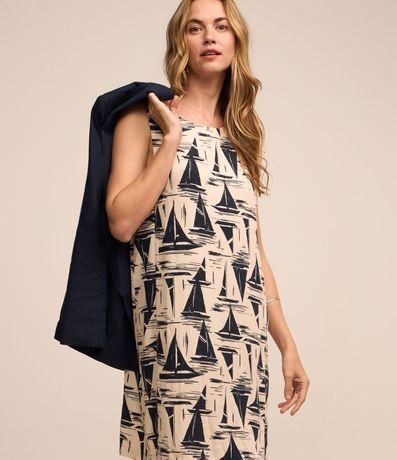 Vestido em Viscose com Estampa Barquinhos a Vela