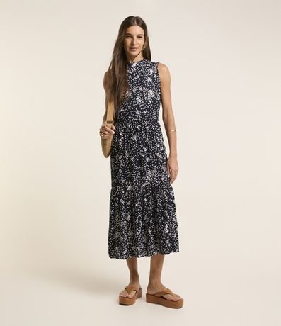 Ref: Vestido midi em viscose com estampa poá.