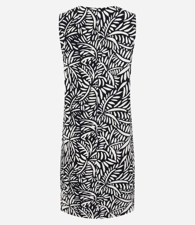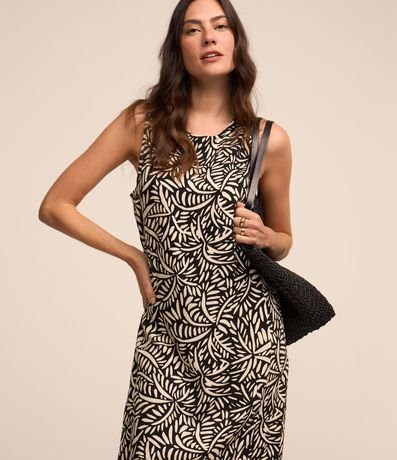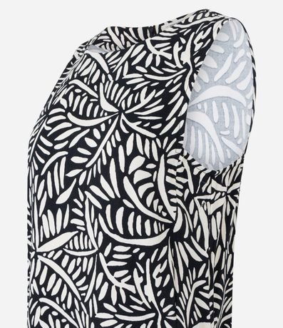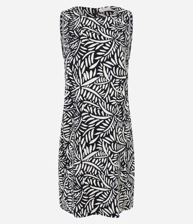Ref: Vestido feminino, confeccionado em viscose, com gola redonda, sem mangas e estampa folhagens.