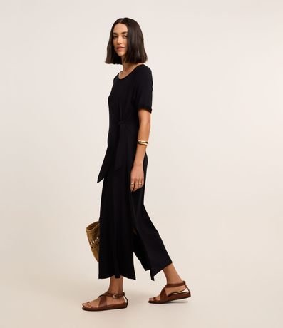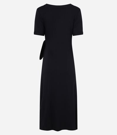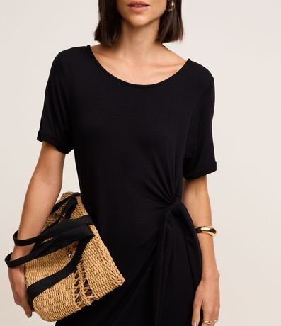 Vestido em Viscose Manga Curta com Decote Careca E Amarração na Lateral