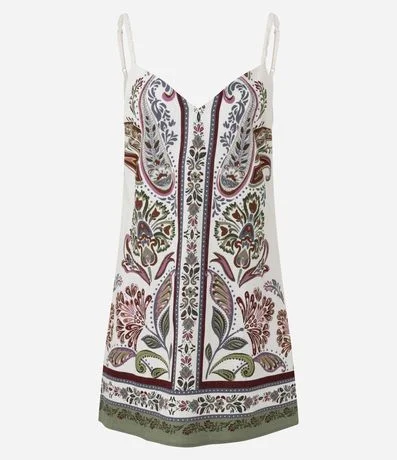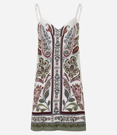Vestido Estampado com Linho e Alca Fina com Ajuste