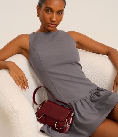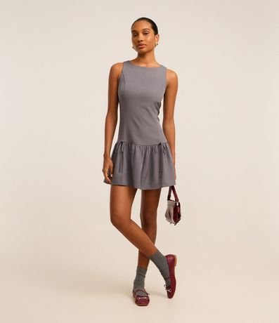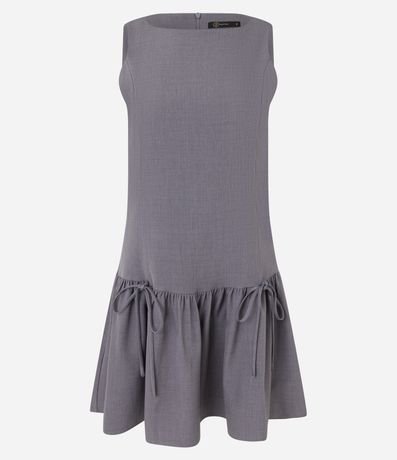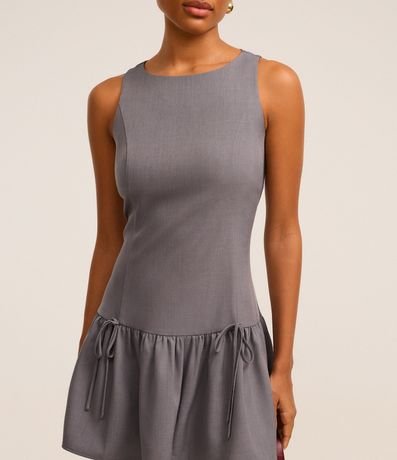 Ref: Vestido evasê curto, confeccionado em crepe, com decote redondo e sem mangas. A peça tem fechamento traseiro por zíper, recorte franzido na barra com amarrações.