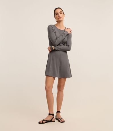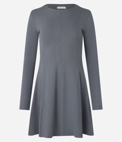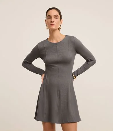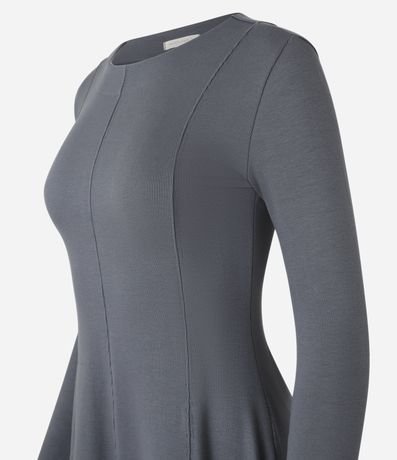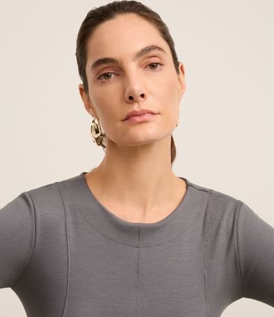 Ref: Vestido feminino no modelo midi com gola redonda, detalhe de recortes, em ribana mais sustentável com boas práticas ambientais.