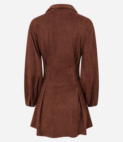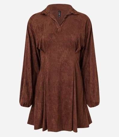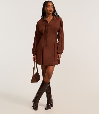 Ref: Vestido evasê, curto com manga longa, gola polo confeccionado em suede e produzido em boas práticas ambientais.
