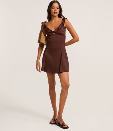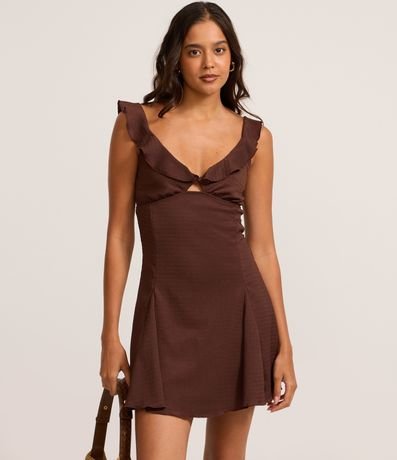 Vestido Evasê Curto Texturizado com Babado no Decote