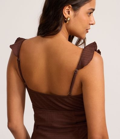 Vestido feminino texturizado, com decote V e babados que destacam a região do busto. Modelagem evasê com nesgas na saia, garantindo leveza e movimento. Alças finas reguláveis para ajuste perfeito. Ideal para looks casuais e frescos.