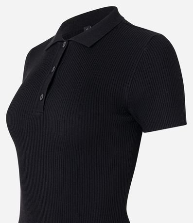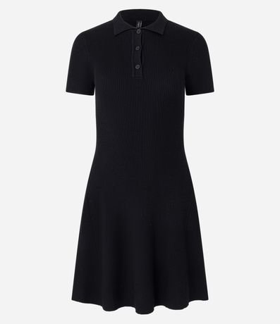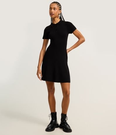 Vestido Evasê em Tricô com Gola Polo