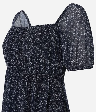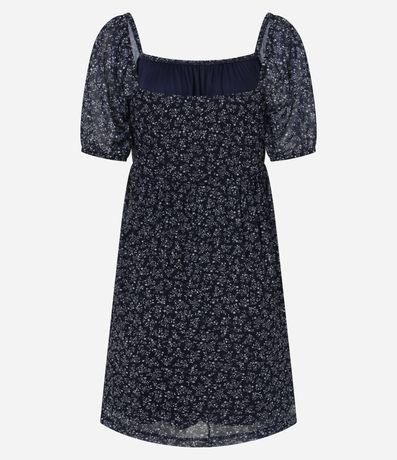 Ref: Vestido evasê confeccionado em tecido de PET reciclado e boas práticas ambientais, com tule leve e estampa floral liberty fullprint. Possui decote reto, mangas curtas bufantes e pala franzida no busto. Forro interno garante conforto e caimento fluido adequado ao visual delicado.