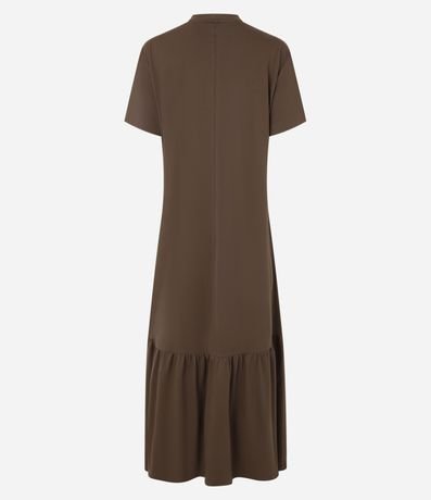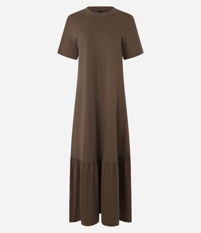 Ref: Vestido evasê, long midi com manga curta, confeccionado em algodão mais sustentável e babado na barra.
