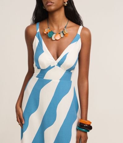 Vestido Evasê Long Midi em Viscolinho com Listras Diagonais