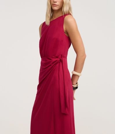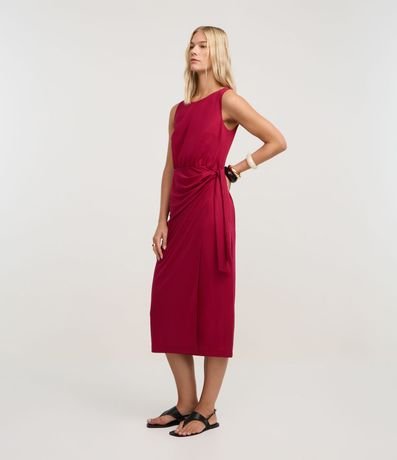 Ref: Vestido evasê longo e sem mangas, confeccionado em piquet, com decote redonda e amarração lateral na cintura. Este produto possui viscose certificada em sua composição, sendo ambientalmente mais responsável.