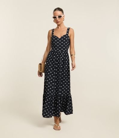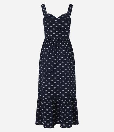 Vestido Evasê Midi em Airflow com Estampa Conchas
