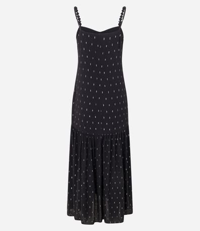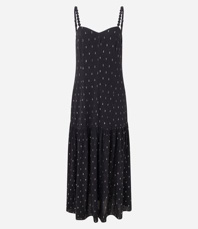 Ref: Vestido feminino confeccionada em viscose mais sustentável, no modelo evasê midi. Possui decote v, alças ajustáveis e estampa. Peça incorporada na tendência Boho.