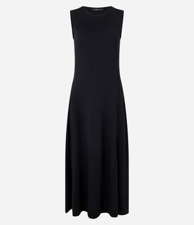 Ref: Vestido evasê de comprimento midi, confeccionado em ponto roma com viscose mais sustentável através de boas práticas ambientais. Peça não possui mangas e tem gola redonda.