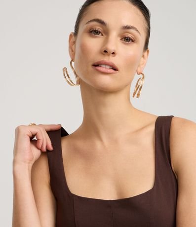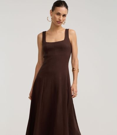 Ref: Vestido evasê midi e sem mangas, confeccionado em viscose, com alças médias, decote quadrado e recortes verticais. Este produto possui viscose certificada em sua composição, sendo ambientalmente mais responsável.