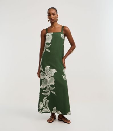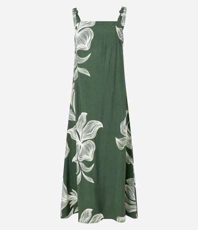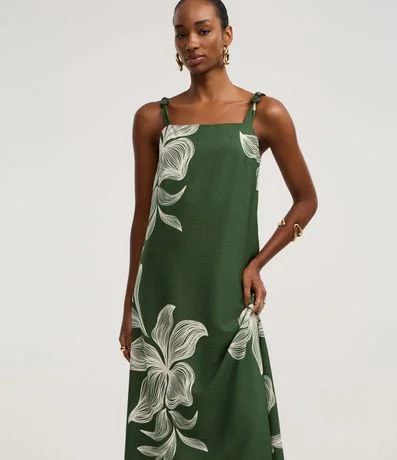 Ref: Vestido evasê midi de alças médias com aviamentos, confeccionado em viscose, com decote reto e estampa floral. Peça bicolor. Este produto possui viscose certificada em sua composição, sendo ambientalmente mais responsável.