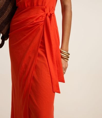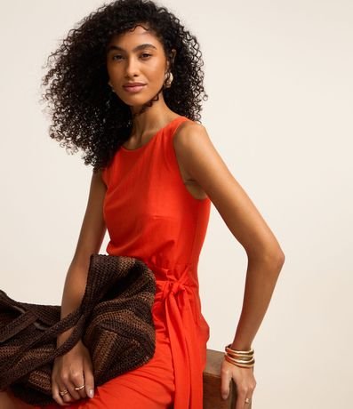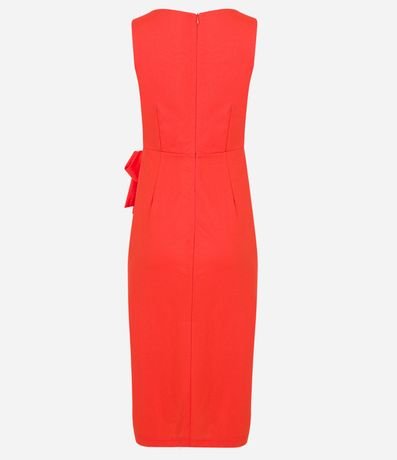 Ref: Vestido evasê new midi confeccionado em pique, sem mangas, com fechamento nas costas por zíper e transpasse frontal com amarração.