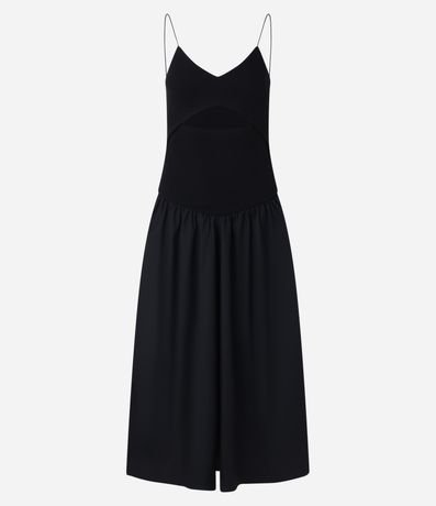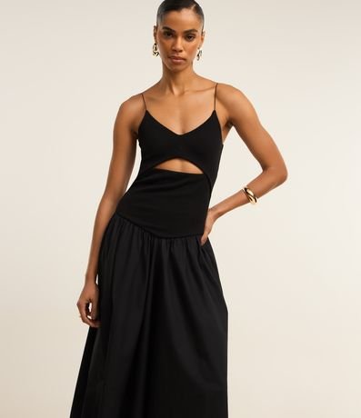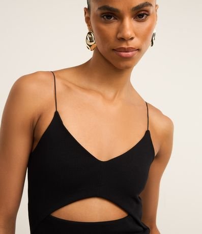 Ref: Vestido new midi, evasê com alça fina, decote coração com recorte cut out abaixo do busto e confeccionado em ribana com viscose certificada mais sustentável.