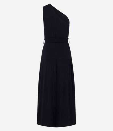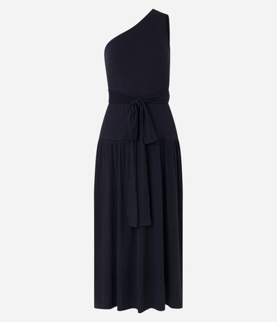 Ref: Vestido evasê com comprimento próximo dos tornozelos com decote ombro único, sem mangas e com busto canelado. Possui passantes e amarração na cintura além de saia godê. Confeccionado em viscose mais sustentável.