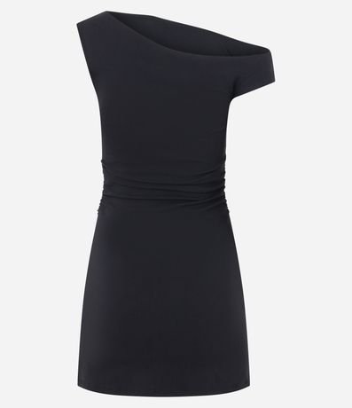 Vestido curto em bengaline com modelagem evasê e decote assimétrico de um ombro só. Possui detalhe franzido na cintura que valoriza a silhueta e caimento estruturado. Peça moderna e elegante para diversas ocasiões, confeccionada com viscose de fonte certificada.