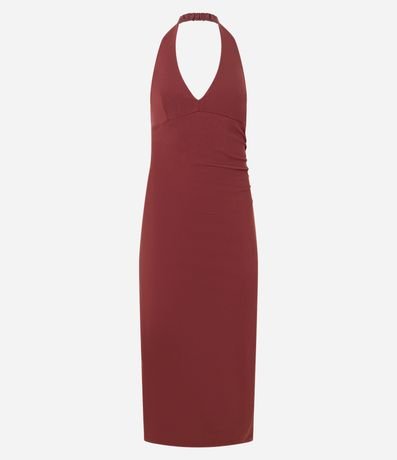 Vestido Frente Única New Midi em Bengaline com Franzidos
