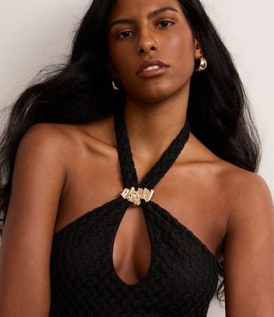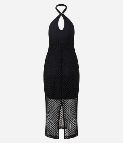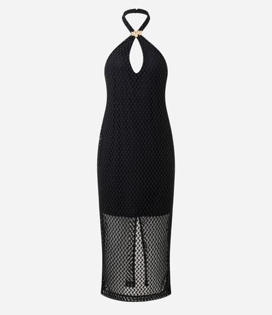 Vestido Frente Único Longo de Renda Texturizada com Aviamento