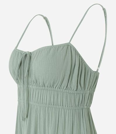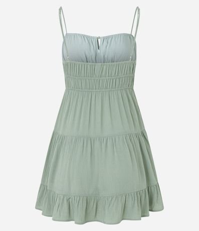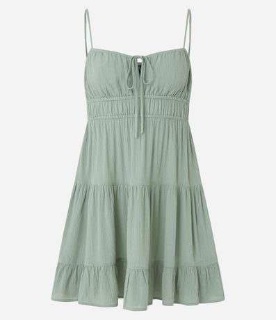 Ref: Vestido godê, curto confeccionmado em crepe com viscose certificada, franzidinhos e amarração no busto com recorte vazado.