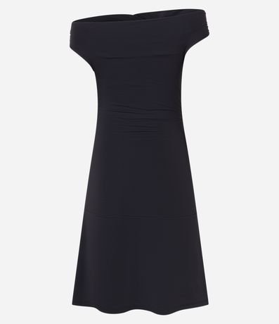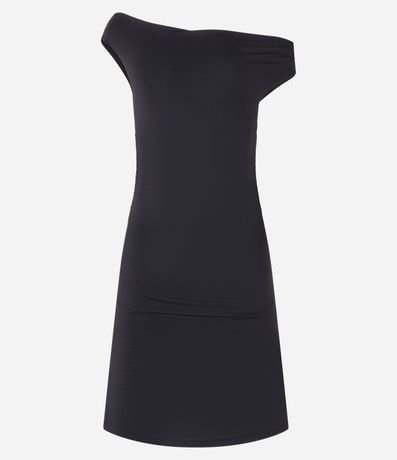 Ref: Vestido curto de malha com decote assimétrico e saia rodada.