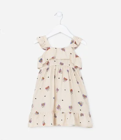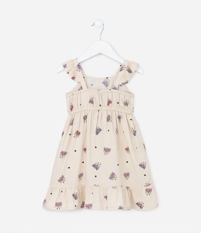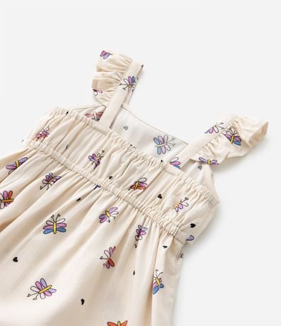 Ref: Vestido infantil confeccionado em viscose, com babados nas alças e busto e possui estampa de borboletas.