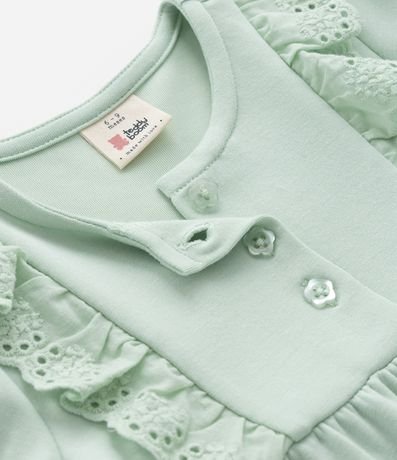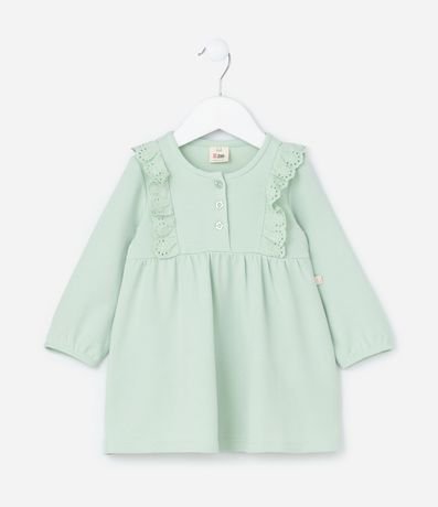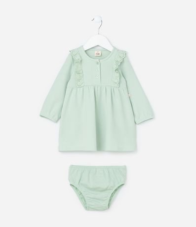 Ref: Vestido infantil confeccionado em modal, com gola redonda, fechamento por botões, manga longa e acompanha calcinha.