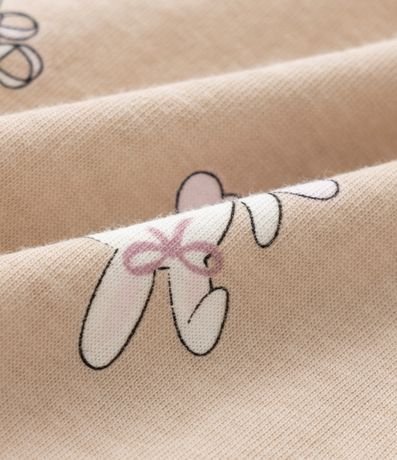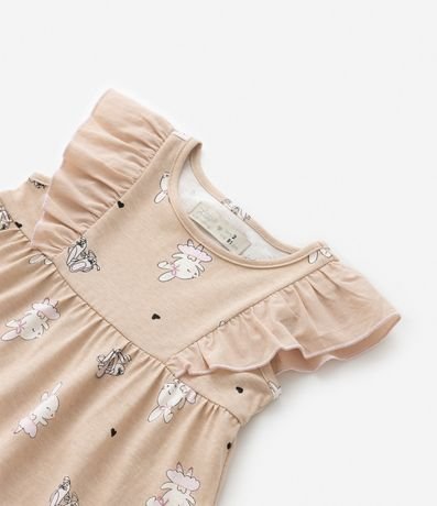 Vestidinho infantil confeccionado em algodão, com babadinhos nas mangas e estampa de coelha bailarina.