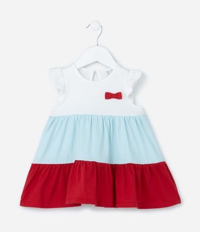 Vestido Infantil com Babados Maria e Lacinho - Tam 0 a 18 meses