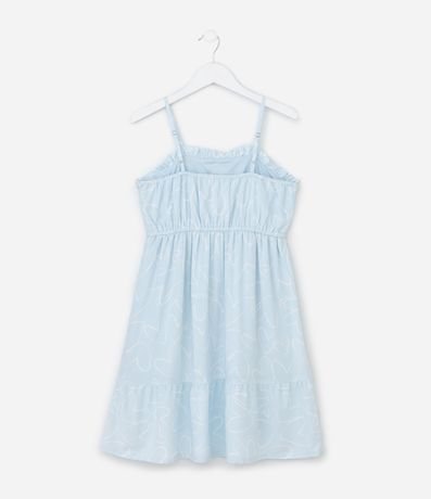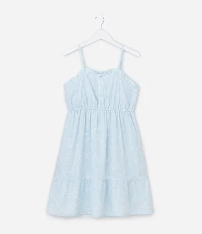Ref: Vestido infantil confeccionado em viscose mais sustentável. Possui decote quadrado, alcinhas ajustáveis, elástico na cintura, babadinho na barra e estampa de corações.