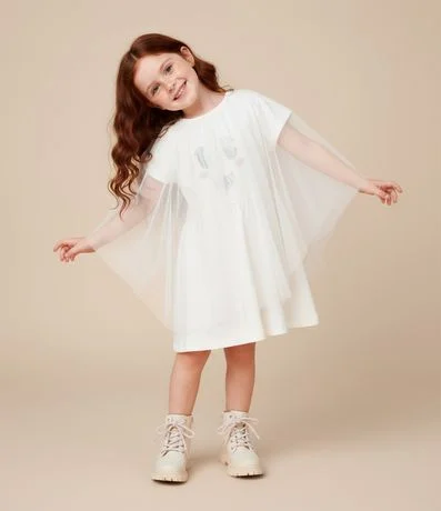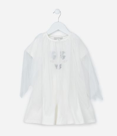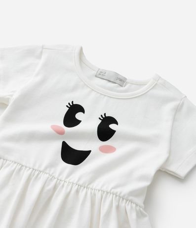 Ref: Vestidinho infantil confeccionado em algodão de material mais sustentável, com gola redonda, mangas curtas, estampa de carinha de fantasma e capa por cima.