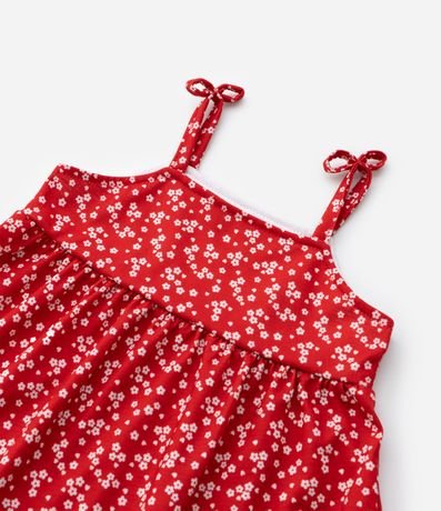 Ref: Vestido infantil confeccionado em anarruga mais sustentável através de boas práticas ambientais. Possui decote quadrado, alças finas, com lacinhos, pregas e estampa floral liberty. Acompanha camiseta, gola redonda, com abotoamento, manga curta, com frufrus e sem estampa.