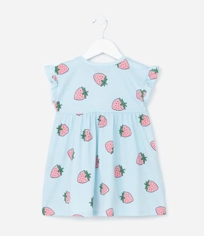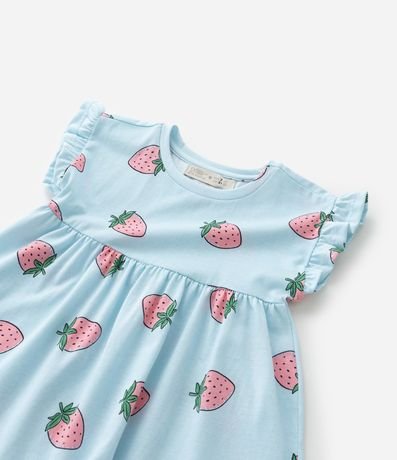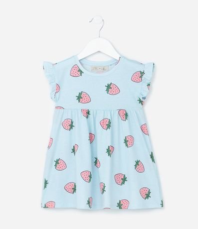 Ref: Vestidinho infantil confeccionado em algodão certificado bci. Possui gola redonda, babadinho nas mangas e estampa de moranguinhos.