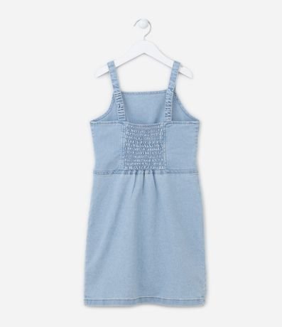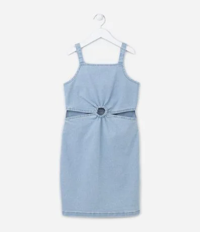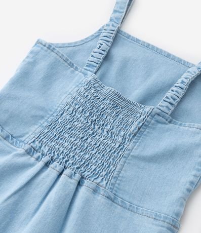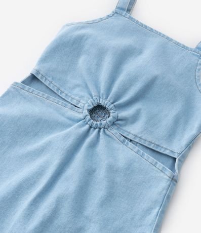 Ref: Vestido infantil com alcinhas elásticas, decote quadrado, recortes laterais vazados, argola vazada na cintura e lastex nas costas.