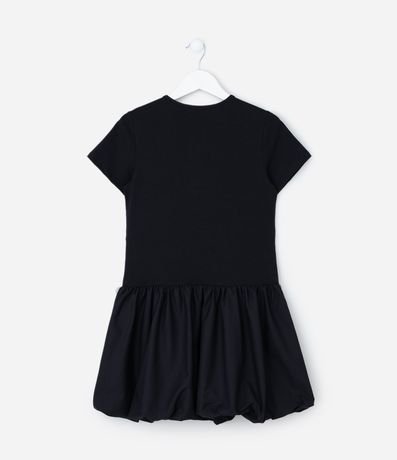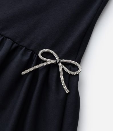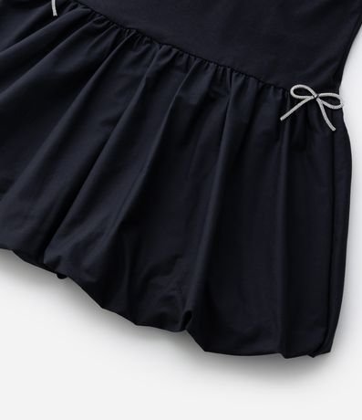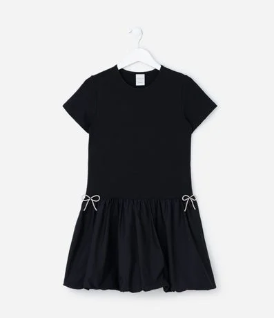 Ref: Vestidinho infantil confeccionado em malha de algodão mais responsável, com gola redonda e mangas curtas. Sem estampa, possui recorte na cintura, lastex nas cotas, aplicação de lacinhos nas laterais e saia bolonê.