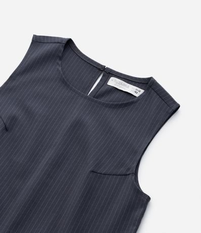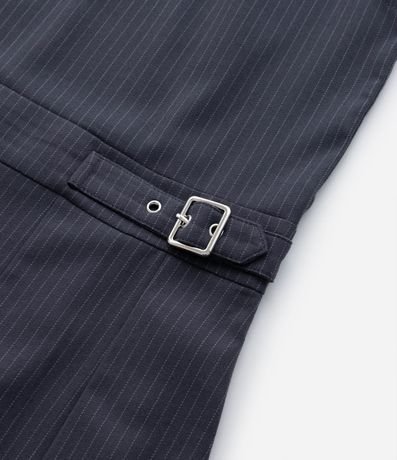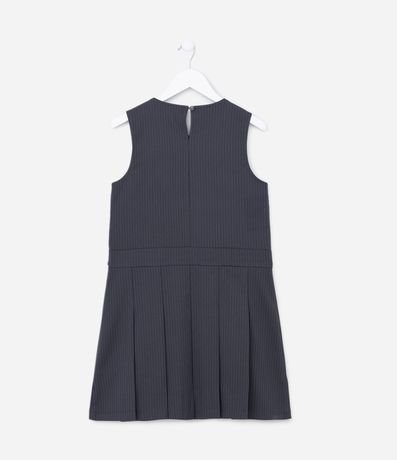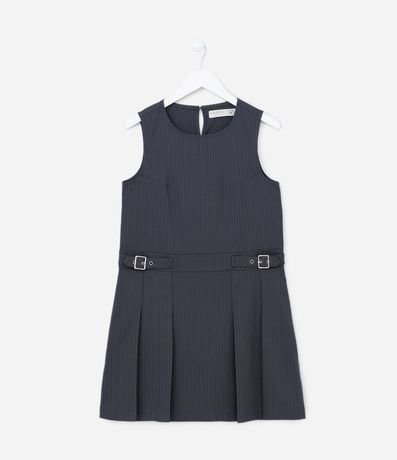 Vestido Infantil em Alfaiataria com Listra Giz e Fivelas na Cintura -Tam 5 a 14 Anos