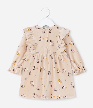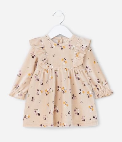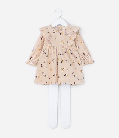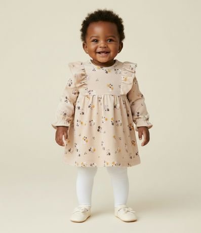 Ref: Vestido infantil confeccionado em algodão certificado BCI, com ribana canelada macia e elasticidade confortável. Possui gola redonda, mangas longas com punhos franzidos, babado nos ombros e saia com leve franzido. Acompanha meia calça canelada para completar o look.