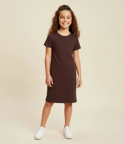 Ref: Vestido infantil confeccionado em ribana mais sustentável através de boas práticas ambientais. Possui gola redonda, manga curta e sem estampa.