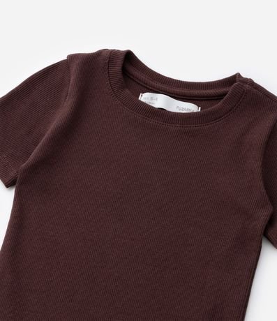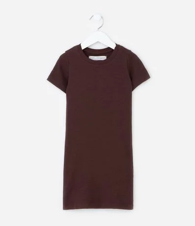 Vestido infantil confeccionado em ribana mais sustentável através de boas práticas ambientais. Possui gola redonda, manga curta e sem estampa.